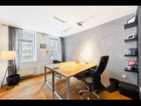 Офис размещен на первом из двух этажей аккуратного бизнес-центра. Особенность объекта заключается в планировке: небольшой вестибюль и крупное открытое пространство, частично разграниченное для создания зон приемной и офисной деятельности, с отдельной зоной для встреч и встроенной чайной кухней.